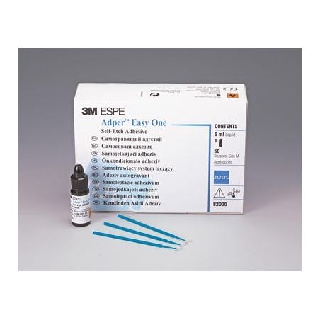 Adezivul Adper™ Easy One prezinta aceleasi proprietati chimice ca si adezivii Adper™ Scotchbond™ Multi-Purpose si Adper™ Single Bond 2. Asadar, pentru confortul dumneavoastra puteti alege adezivul autogravant monocomponent pe care il puteti folosi cu incredere stiind are la baza traditia puternica a firmei 3M ESPE in domeniul tehnologiei adezivilor si o experienta de peste 25 de ani in domeniul medicinei dentare.