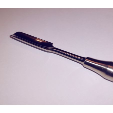 Scraper de os (bone scraper) cu varf dublu, diametre 6 si 7.5 mm. Din inox rezistent si usor, cu maner cu striatii pentru priza sporita.